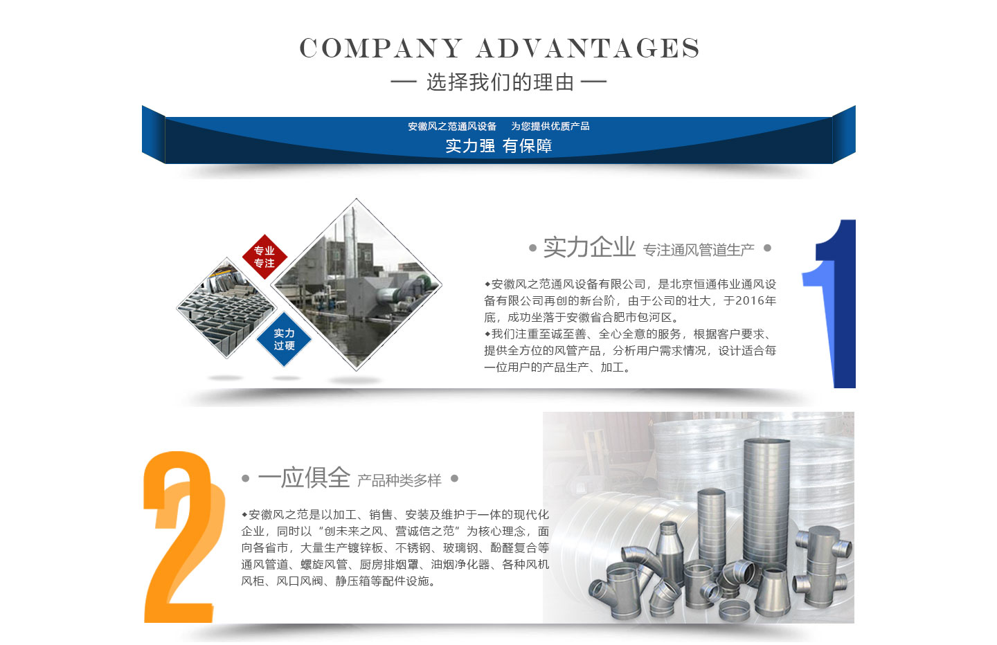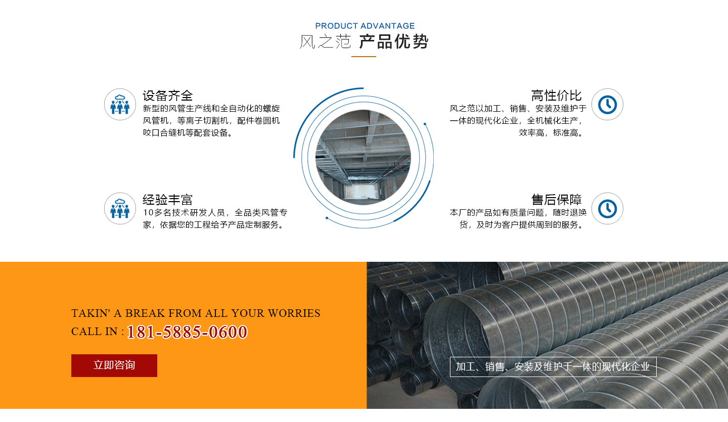 安徽風(fēng)之范通風(fēng)設(shè)備有限公司,是北京恒通偉業(yè)通風(fēng)設(shè)備有限公司再創(chuàng)的新臺(tái)階,多年來(lái),公司員工憑著“誠(chéng)信敬業(yè)、團(tuán)結(jié)拼搏、勇于開拓、務(wù)實(shí)進(jìn)取”的企業(yè)精神,先后承接了多項(xiàng)重點(diǎn)工程項(xiàng)目,使公司健康穩(wěn)步發(fā)展。現(xiàn)由于公司的壯大,業(yè)務(wù)的拓展,又于2016年底,成功坐落于安徽省合肥市包河區(qū)。本公司生產(chǎn)設(shè)備精良,技術(shù)力量雄厚,質(zhì)保體系完善!讓用戶體驗(yàn)到,貼心的服務(wù),無(wú)憂的售后!風(fēng)之范是以加工、銷售、安裝及維護(hù)于一體的現(xiàn)代化企業(yè),同時(shí)以“創(chuàng)未來(lái)之風(fēng)、營(yíng)誠(chéng)信之范”為核心理念,面向全國(guó)各省市,大量生產(chǎn)鍍鋅板、不銹鋼、玻璃鋼、酚醛復(fù)合等通風(fēng)管道、螺旋風(fēng)管、廚房排煙罩、油煙凈化器、各種風(fēng)機(jī)風(fēng)柜、風(fēng)口風(fēng)閥、靜壓箱等配件設(shè)施。廣泛承接商場(chǎng)、工廠、酒店、寫字樓、地下室等,消防排煙工程、除塵凈化工程、室內(nèi)通風(fēng)工程、暖通空調(diào)工程、廚房排煙凈化工程。我們力求上進(jìn),追求,歡迎各界人士技術(shù)指導(dǎo),經(jīng)濟(jì)合作,共創(chuàng)美好明天!